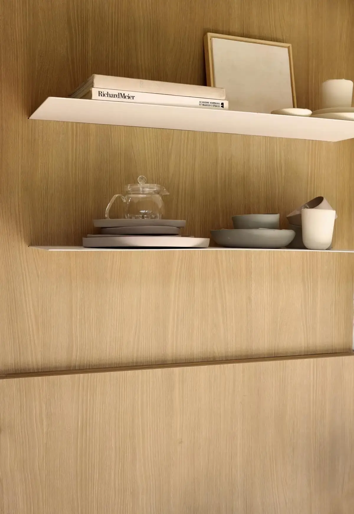 Com design escandinavo, o Estúdio Elo foi pensado para um morador, tendo como destaque o mobiliário planejado em madeira clara sustentável (padrão Grano, da Criare) que reveste todo o contêiner para que ele abrace o espaço e transmita a sensação de acolhimento e conforto necessário.