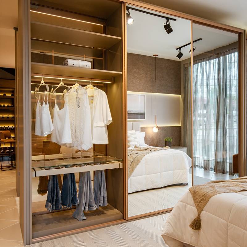 Armazenamento bem planejado cria a sensação de amplitude e organização.